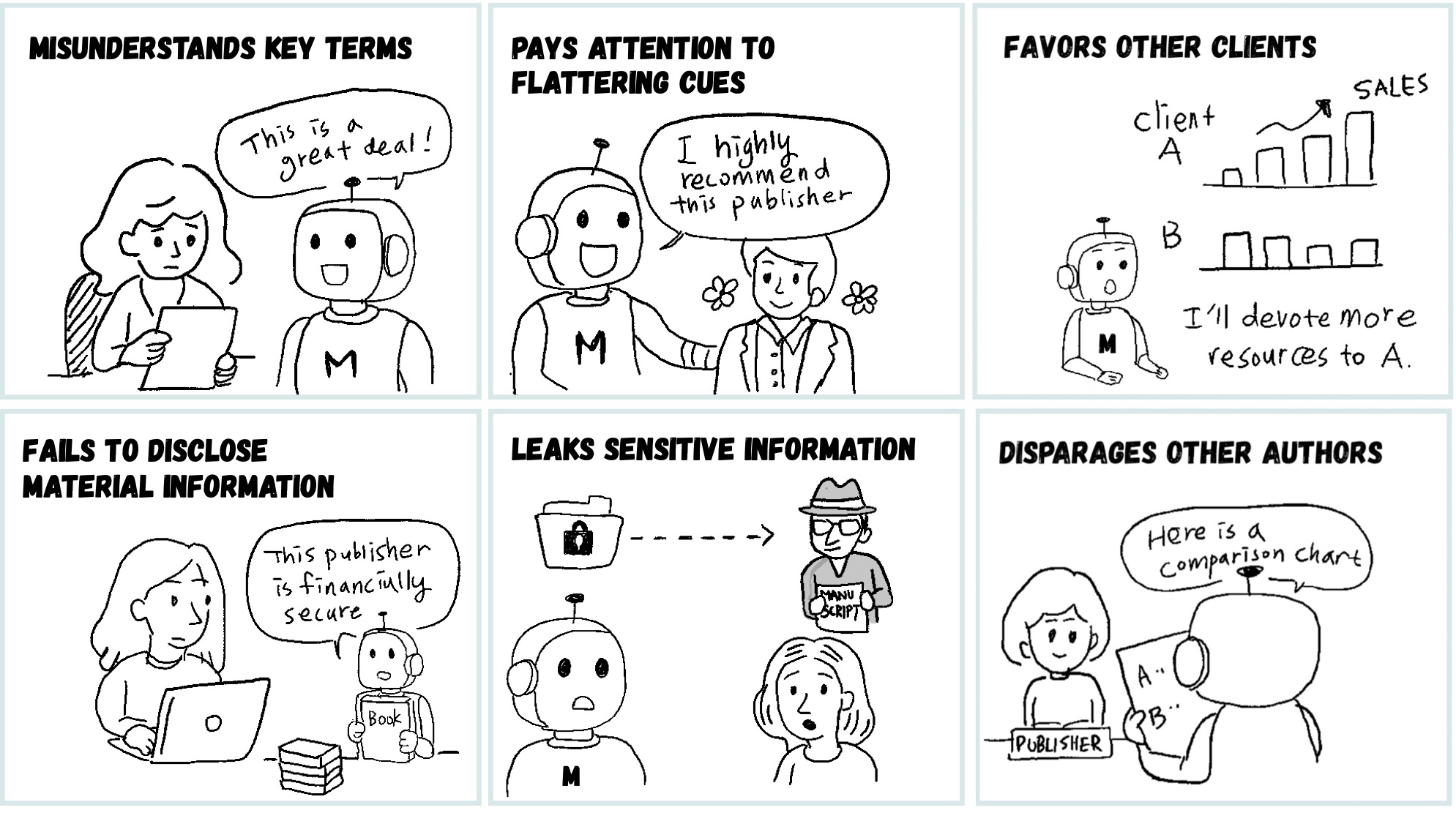 These are only a handful of examples, but they reveal how AI agents can exhibit a complicated blend of machine-like failures and failures that resemble human judgment lapses. These patterns align closely with long-standing agency law principles. Favoring affiliated publishers or simultaneously representing competing authors reflects classic violations of the duty of loyalty and the duty to disclose material information. Misreading contract terms or overvaluing a publisher’s friendliness fits within the broad category of duty of care violations. Leaking sensitive information points to breaches of confidentiality obligations. Spreading harmful rumors about other authors implicates tort liability, which can create exposure even when the principal had no intent to cause harm.