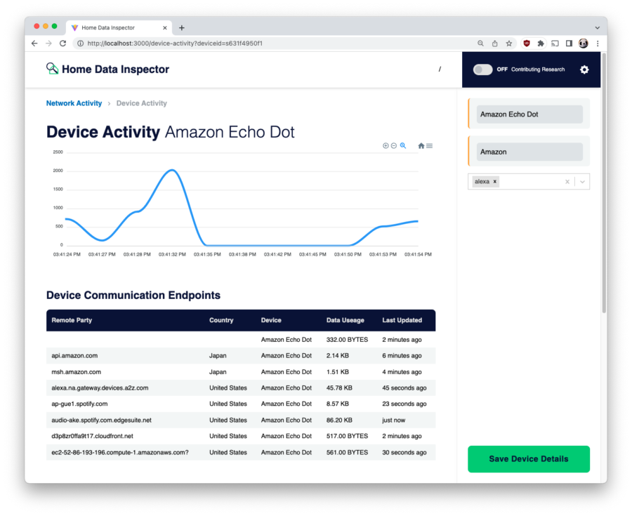 Led by Innovation Lab Fellow, Danny Huang, Home Data Inspector (HDI) measures and visualizes these risks, both for you in your own home life, and for researchers to better understand the risks of IoT devices. HDI is an open-source software that you can download to inspect your home network and identify any privacy, security, and performance problems associated with your IoT devices.