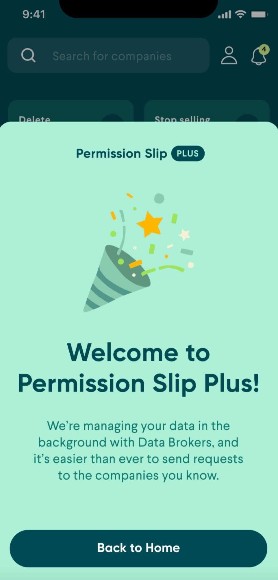 Today, we’re excited to announce Permission Slip Plus, an even more powerful way to reduce your digital footprint. Paid subscribers will have access to powerful automation and additional support from our team of data experts. With Permission Slip Plus, you’ll get: