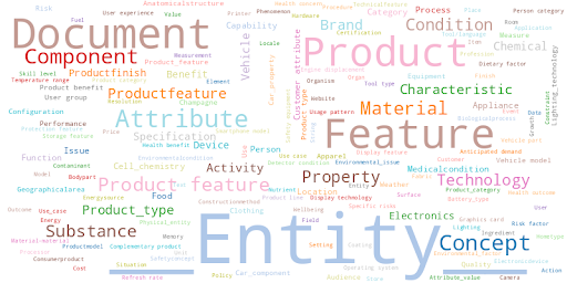 A wordcloud of the node labels with their sizes being defined by the frequency of their repetition in the KG