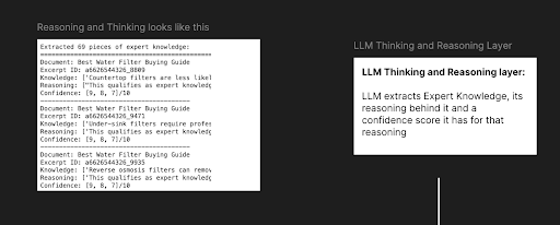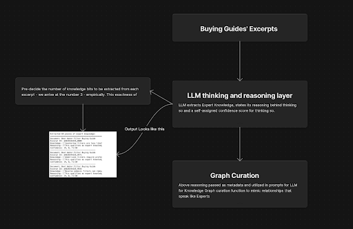 Our database contains vast amounts of information that’s been processed using existing logic for retrieval-augmented generation (RAG). While this gives us well-structured, chunked excerpts of content, it doesn’t capture the expert-level insights and reasoning patterns.